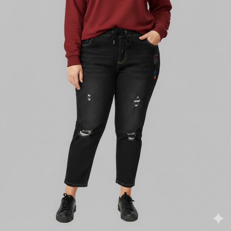 Эластичные джеггинсы с высокой посадкой и вышивкой