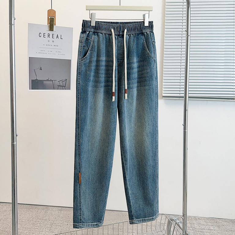 Прямые голубые джинсы на резинке