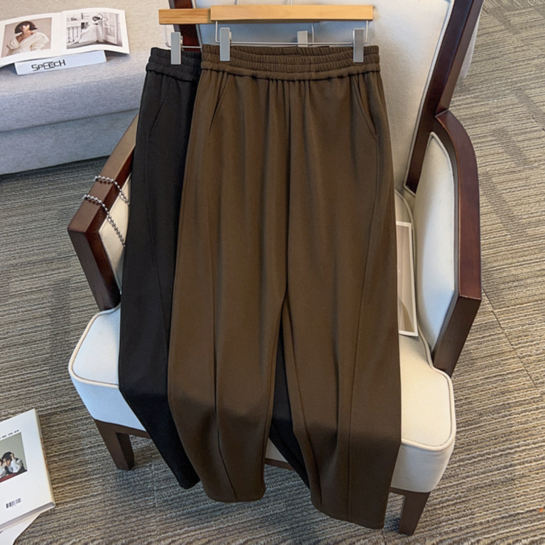 Плотные брюки на резинке декорированные отстрочкой